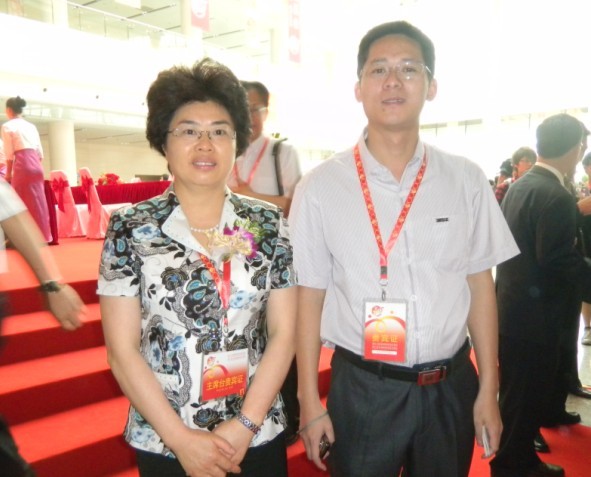2011年5月18日,第十三届海峡两岸经贸交易会、第八届中国福建商品交易会在福州海峡国际会展中心隆重开幕,漳州市人民政府市长吴洪芹与苏水良记者合影留念。