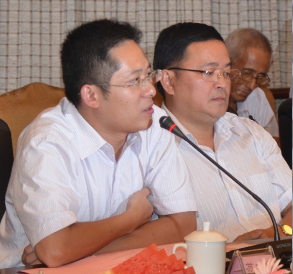 财富海西杂志社社长、总编辑苏水良,世纪恒升发展集团董事局主席苏谈成认真听取龙岩苏氏发展情况。