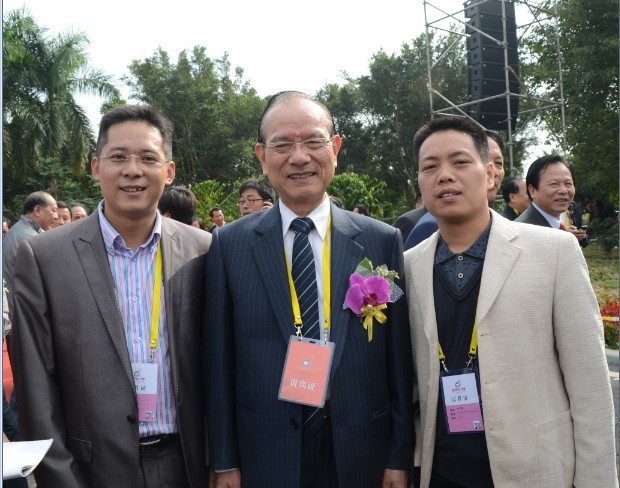2012年11月18日,第四届海峡两岸现代农业博览会·第十四届海峡两岸花卉博览会在漳州花博园内隆重开幕,财富海西杂志社社长、总编辑苏水良(左)与中国国民党副主席林丰正(中)合影留念。