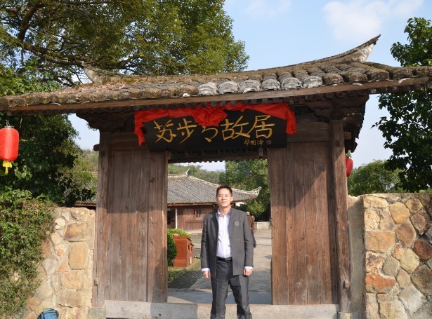 财富海西杂志社社长、总编辑,福建省苏氏委员会副会长、秘书长苏水良苏在苏步青故居大门留念。