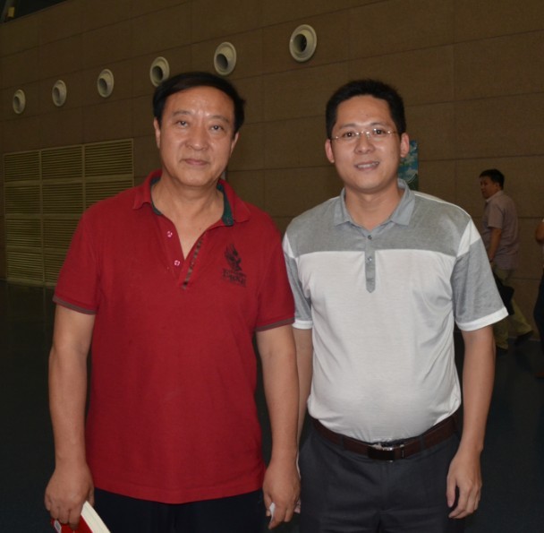2013年6月24日,在河南省郑州新郑国际机场,财富海西杂志社社长、总编辑苏水良与著名相声演员牛群合影留念。