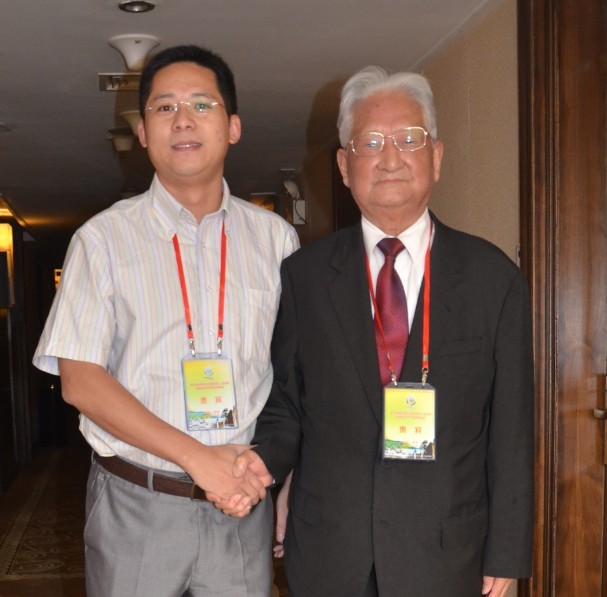 2013年6月28日,2013年海峡两岸茶产业发展研讨会在福安市举行,财富海西杂志社社长、总编辑苏水良与国家农业部原部长何康合影留念。