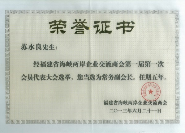 苏水良当选福建省海峡两岸企业交流商会常务副会长