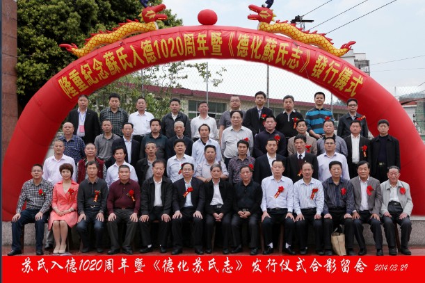 受苏谈成会长的委托,我仅代表福建省姓氏源流研究会苏氏委员会《德化苏氏志》隆重发行暨苏氏入德1020周年纪念活动表示热烈的祝贺。