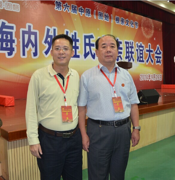 2014年9月26日,第六届中原(固始)根亲文化节在固始县举行,《财富海西》杂志社社长、总编辑苏水良与九届河南省政协副主席、中国河洛文化研究会常务副会长陈义初合影留念。
