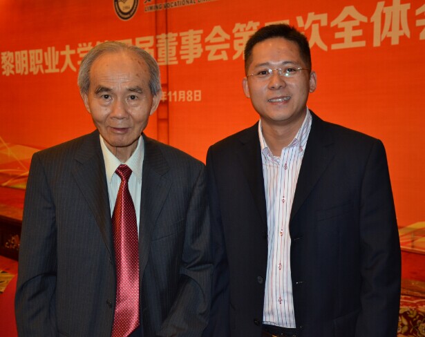 2014年11月8日,黎明职业大学第四届董事会第二次全体会议在泉州酒店召开,《财富海西》杂志社社长、总编辑苏水良与黎明职业大学校长林松柏合影留念。