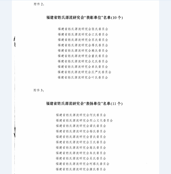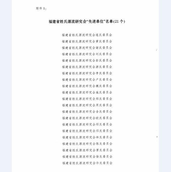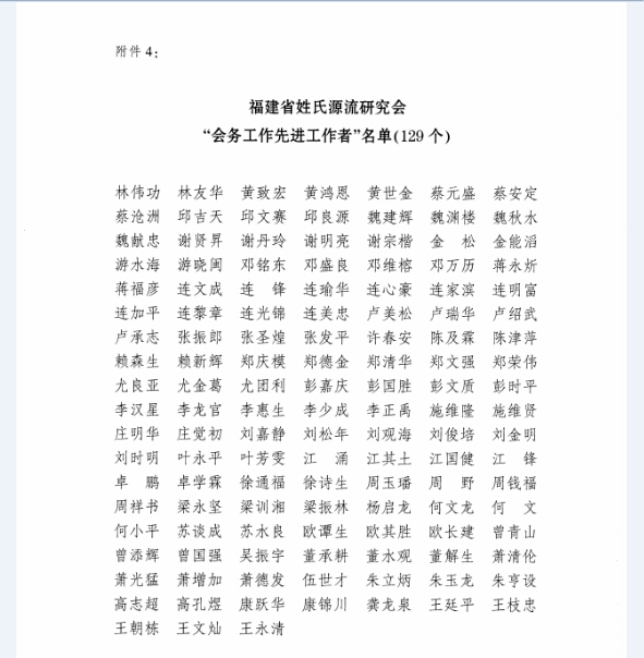 福建省姓氏源流研究会表彰“2014年会务工作先进者”名单