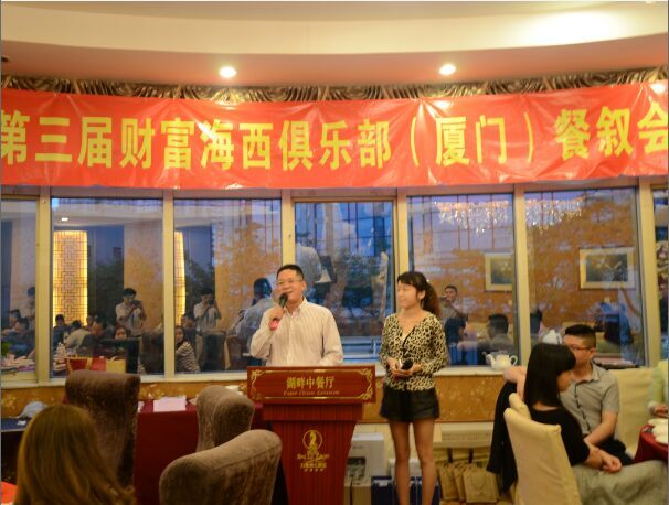 财富海西俱乐部餐叙会已先后在福州、安溪等城市相继举办,取得良好的交流效果。我们有些朋友已经受益,有些项目已经接上信号,我更期望的是早日开花结果,到时在一起同大家分享。