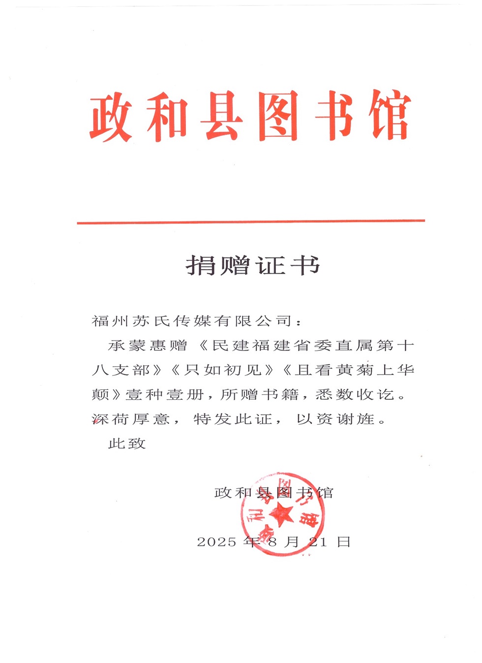 政和县图书馆收藏《民建福建省委直属第十八支部》会刊等