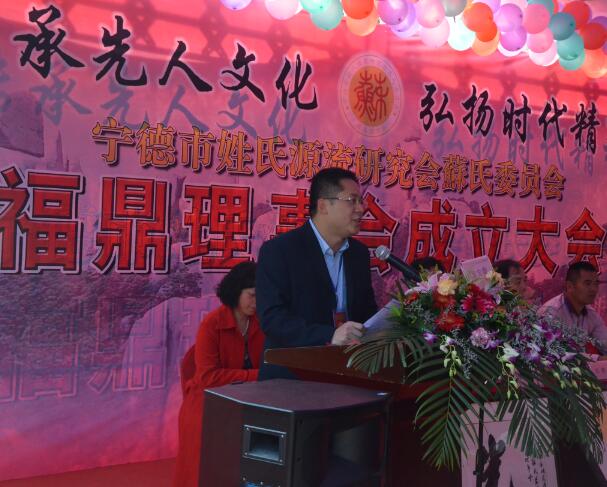 怀着十分喜悦的心情,宁德市苏氏委员会福鼎理事会今天成立了,这不仅是福鼎5000多位苏氏宗亲的盛事,更是福建苏氏宗亲交流活动的一件喜事。我谨代表福建省苏氏委员会对宁德市会苏氏委员会福鼎理事会的成立表示最热烈的祝贺!
