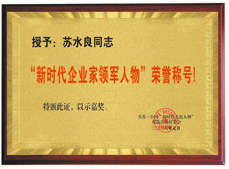 苏水良同志荣获“新时代企业家领军人物”荣誉称号
