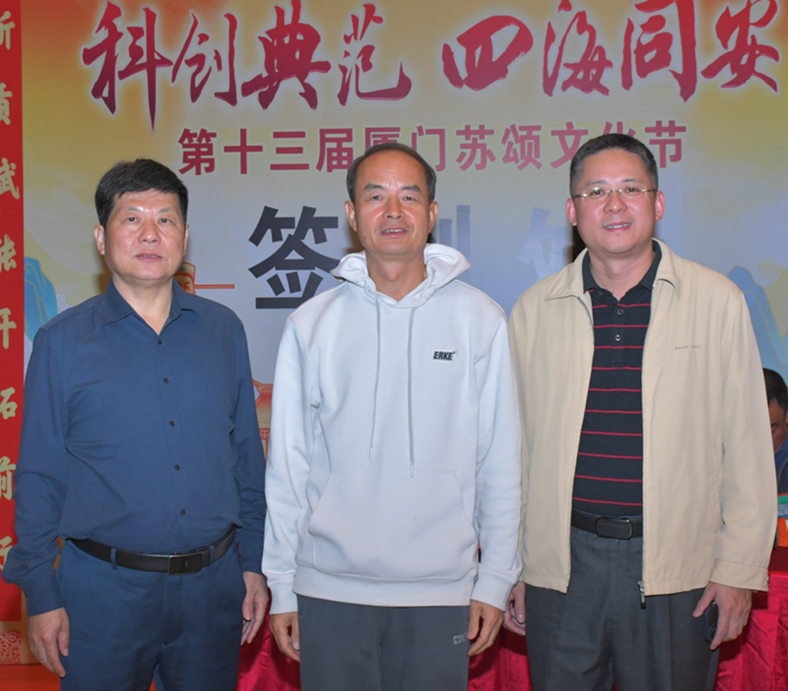 2024年12月10日,第十三届厦门苏颂文化节在同安区举行,福州苏氏传媒有限公司董事长、资深媒体人苏水良与福建省文化和旅游厅原副厅长苏庆赐,龙岩苏良华宗长合影留念。